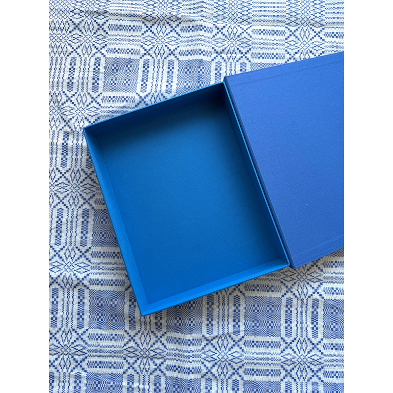 Box with cover of high-quality bookbindery cloth. Sides covered with matching durable paper. The inner quality cardboard is produced by 100% recycled material.