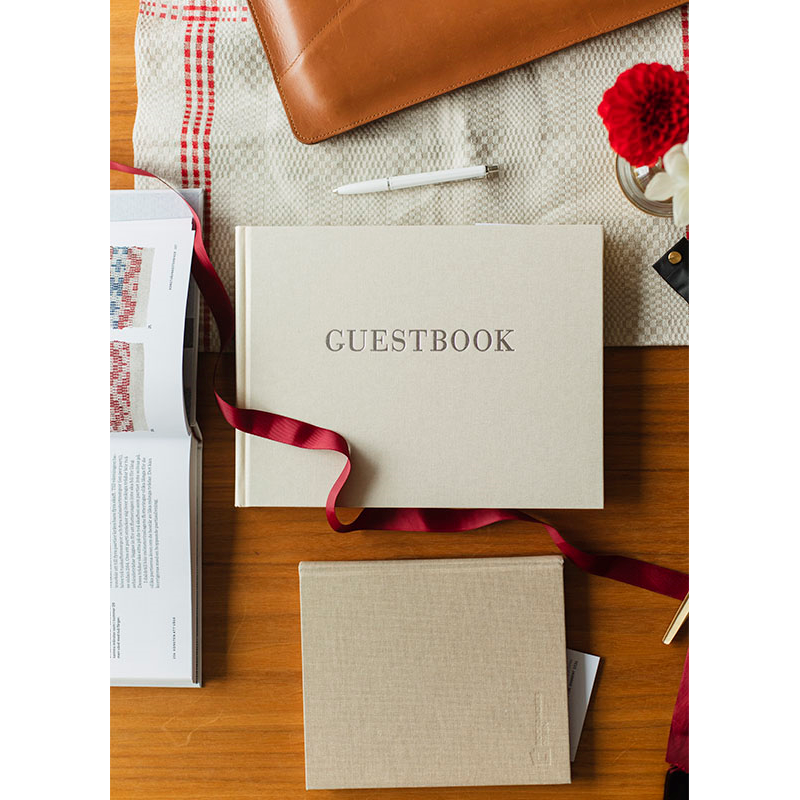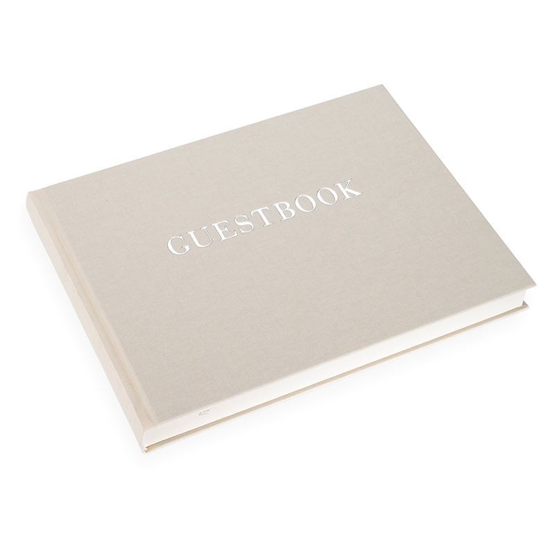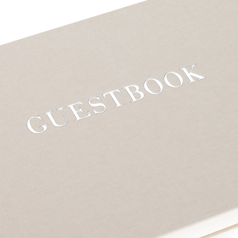 Embossé en argenté avec "Guestbook".