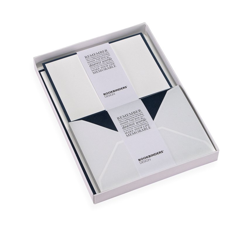 10 cartes à liseré de couleur, 10 enveloppes de papier coloré à l'intérieur, 20 feuilles de papier à lettre de format A5 avec liseré de couleur. 100% papier coton. 118 gr pour les enveloppes et le papier et 297 gr pour les cartes. Papier certifié, américain et sans acide.